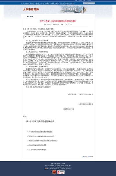 此次被认定为首批市级消费品特色园区的有:中北高新区智能设备消费品特色园区、阳曲示范区中医药健康消费品特色园区、阳曲示范区绿色冷鲜农产品消费品特色园区、清徐老陈醋消费品特色园区、尖草坪区食品消费品特色园。我市要求,各园区的所属部门要定期召开园区建设推进会,研究解决园区发展中的重大问题。加强对园区内企业的服务和指导,帮助企业解决生产经营中的实际困难,营造良好的发展环境。各园区要充分发挥园区的产业集聚优势,聚焦智能设备、中医药健康、绿色冷鲜农产品、清徐老陈醋、食品等消费品产业,延长产业链条,提升产业附加值。优化营商环境,落实好各项惠企政策,为企业提供“一站式”、保姆式服务。对引进的重大项目,要建立跟踪服务机制,确保项目早落地、早投产、早见效。(李 静)