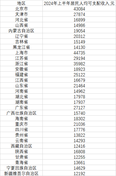 31省份上半年人均可支配收入出炉,北京、上海超4.5万元国家统计局网站公布了31个省份2025年上半年居民人均可支配收入情况。数据显示,今年上半年,有11个省份居民人均可支配收入超过2万元,其中,上海和北京超过了4.5万元,江苏和浙江超过3万元。